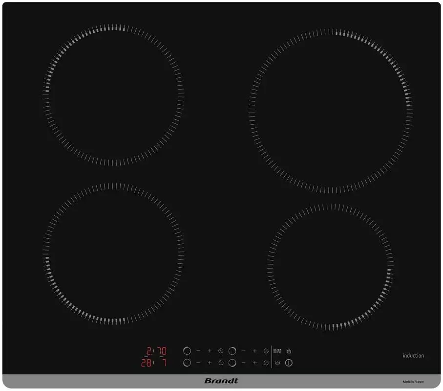 Встраиваемая независимая индукционная панель Brandt BPI1641PB, оснащенная четырьмя конфорками, относится к категории «премиум».